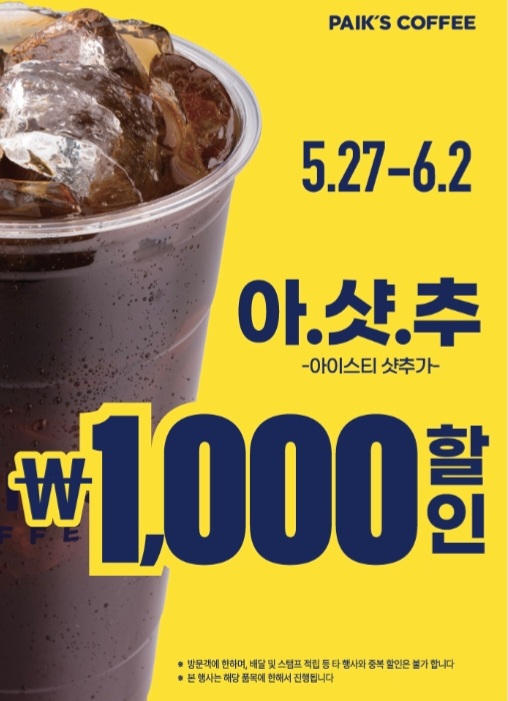 5월 27일 ~ 6월 2일 아샷추(아이스티 샷 추가) ₩1,000 할인