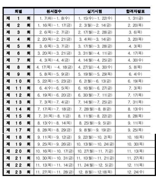 접수기간은 회별 원서접수 첫날 10시~ 마지막날 오후 6시