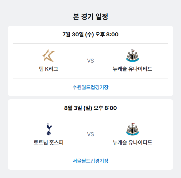 2025년 프리시즌, 토트넘과 뉴캐슬이 서울에서 맞붙습니다.