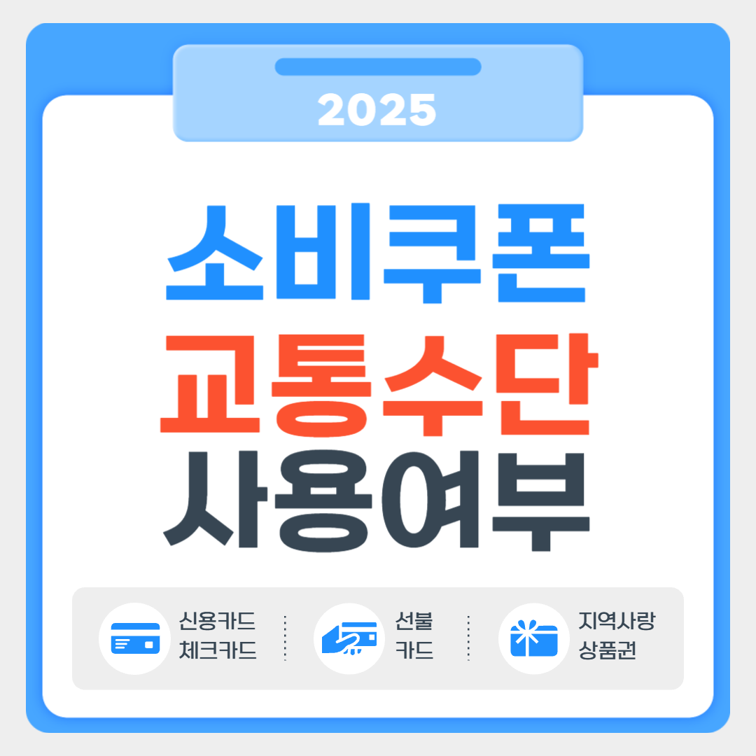 - 선불 교통카드 (티머니 등): 일반 카드에 교통카드 기능이 내장되어 있어도, 교통요금은 별도의 선불 계좌에서 차감되므로 쿠폰 사용이 적용되지 않습니다.